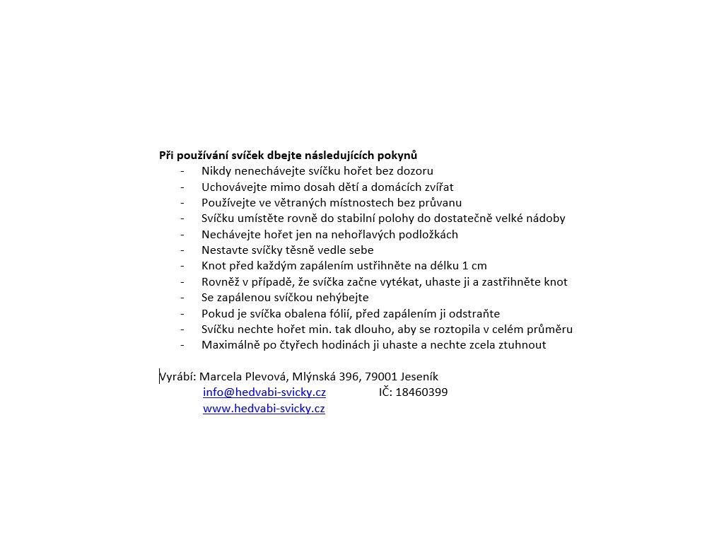 Vyrábí: Marcela Plevová, Mlýnská 396, 79001 Jeseník